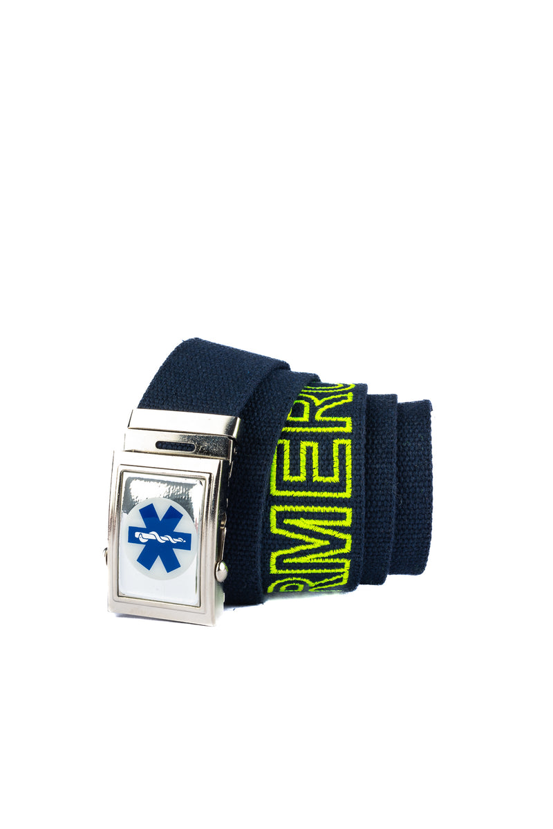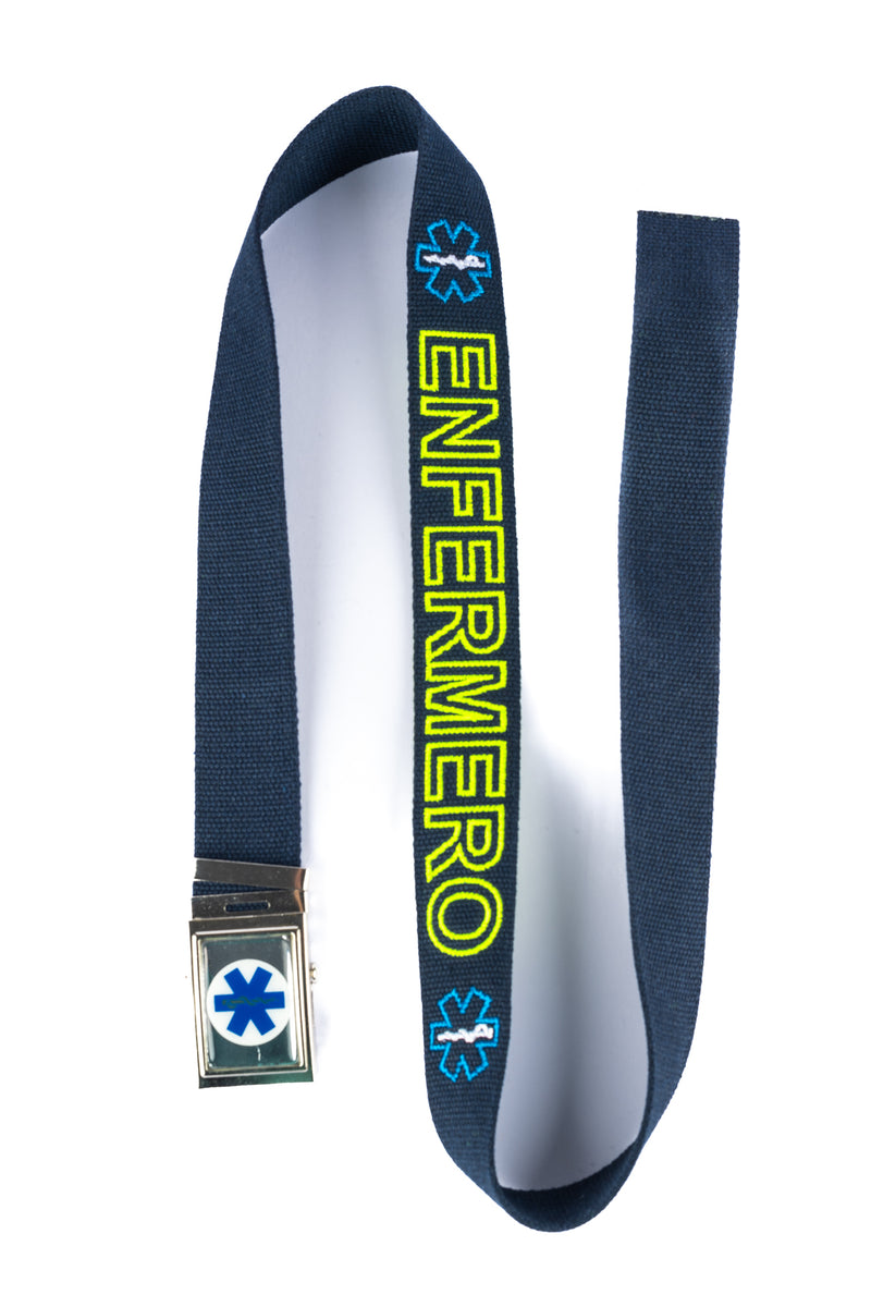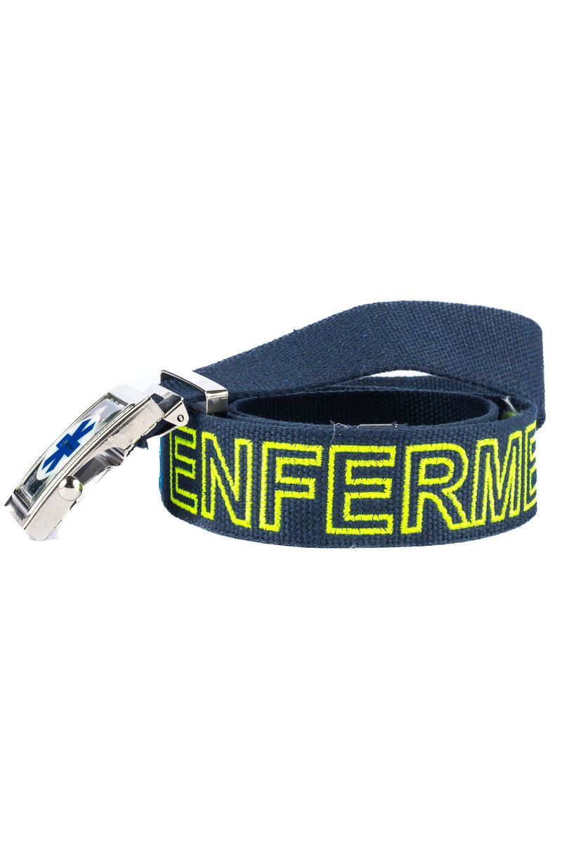 BLUE BELT WITH GLAZED LOGO AND DIRECT "NURSE" EMBROIDERY