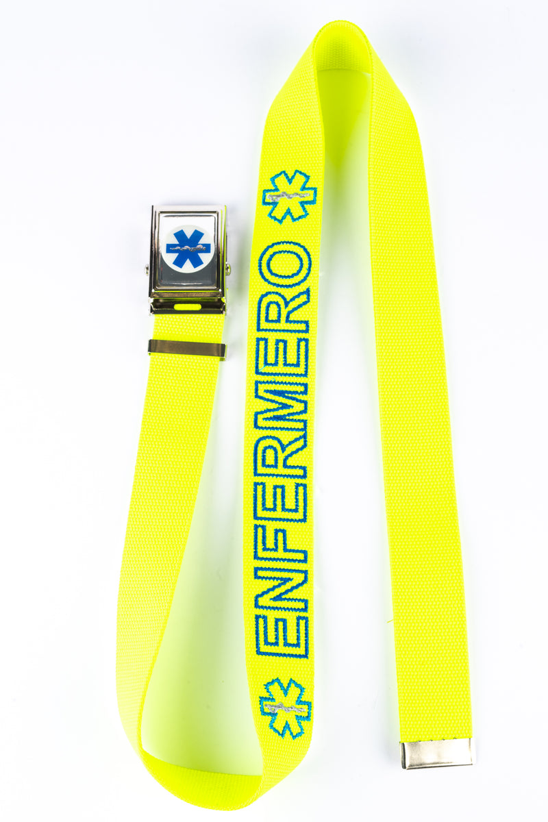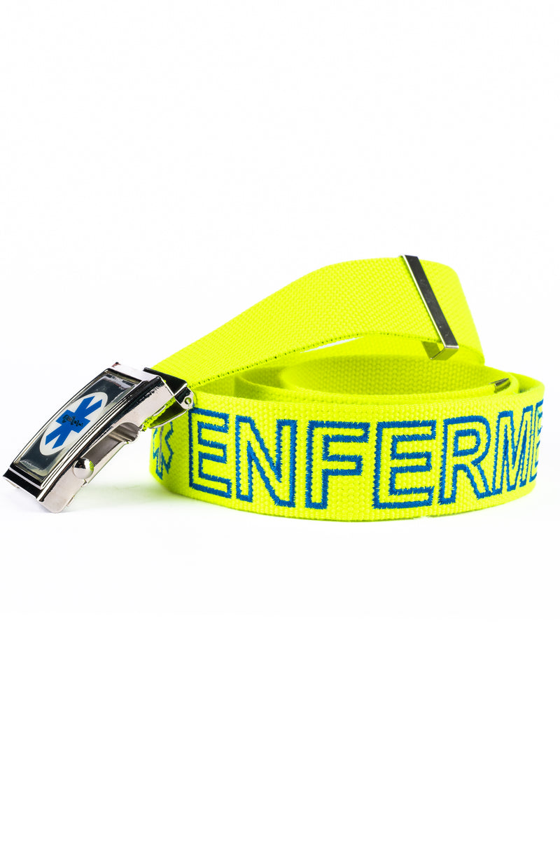 BLUE BELT WITH GLAZED LOGO AND DIRECT "NURSE" EMBROIDERY