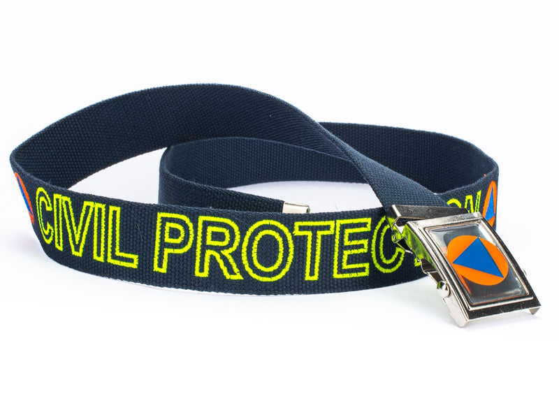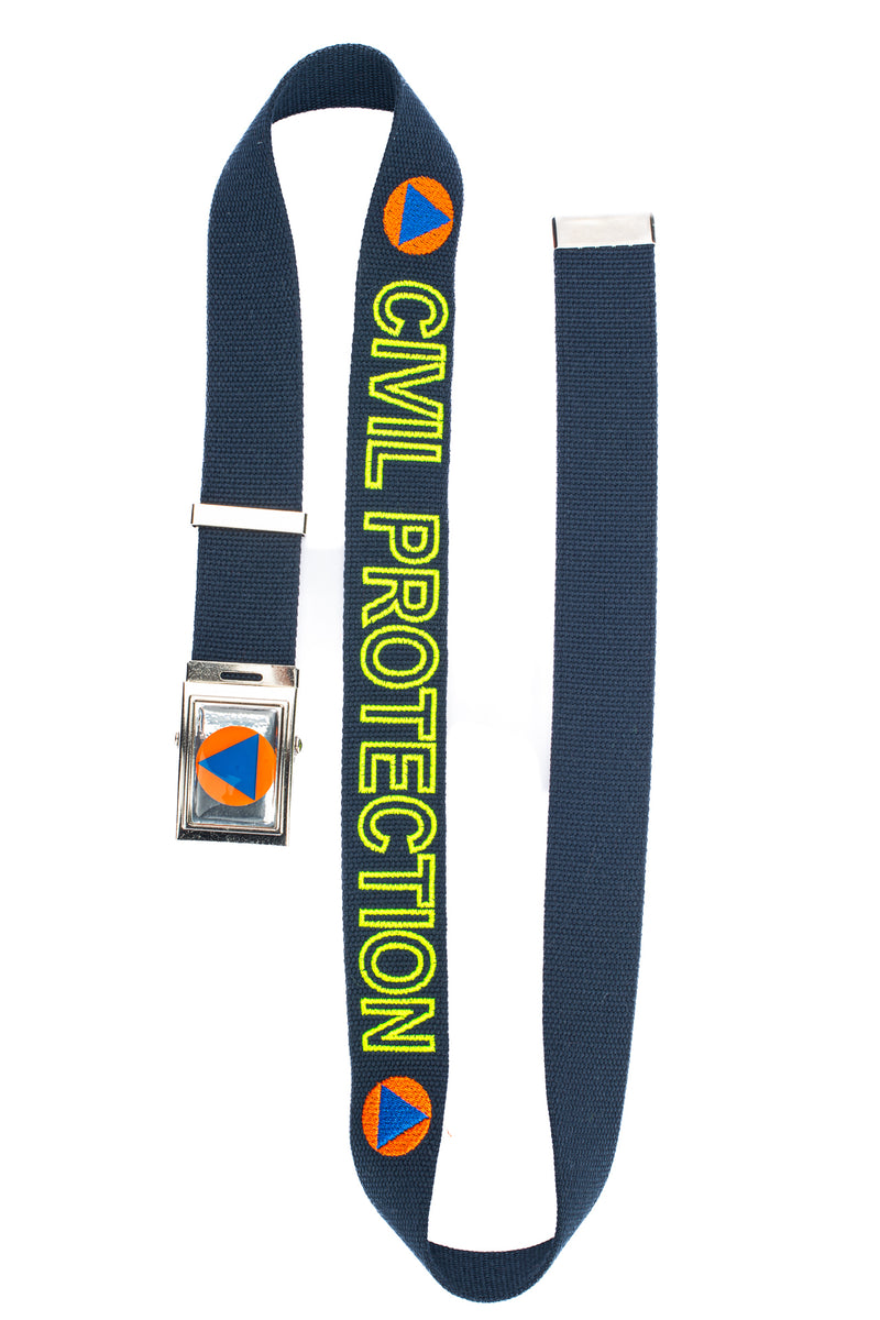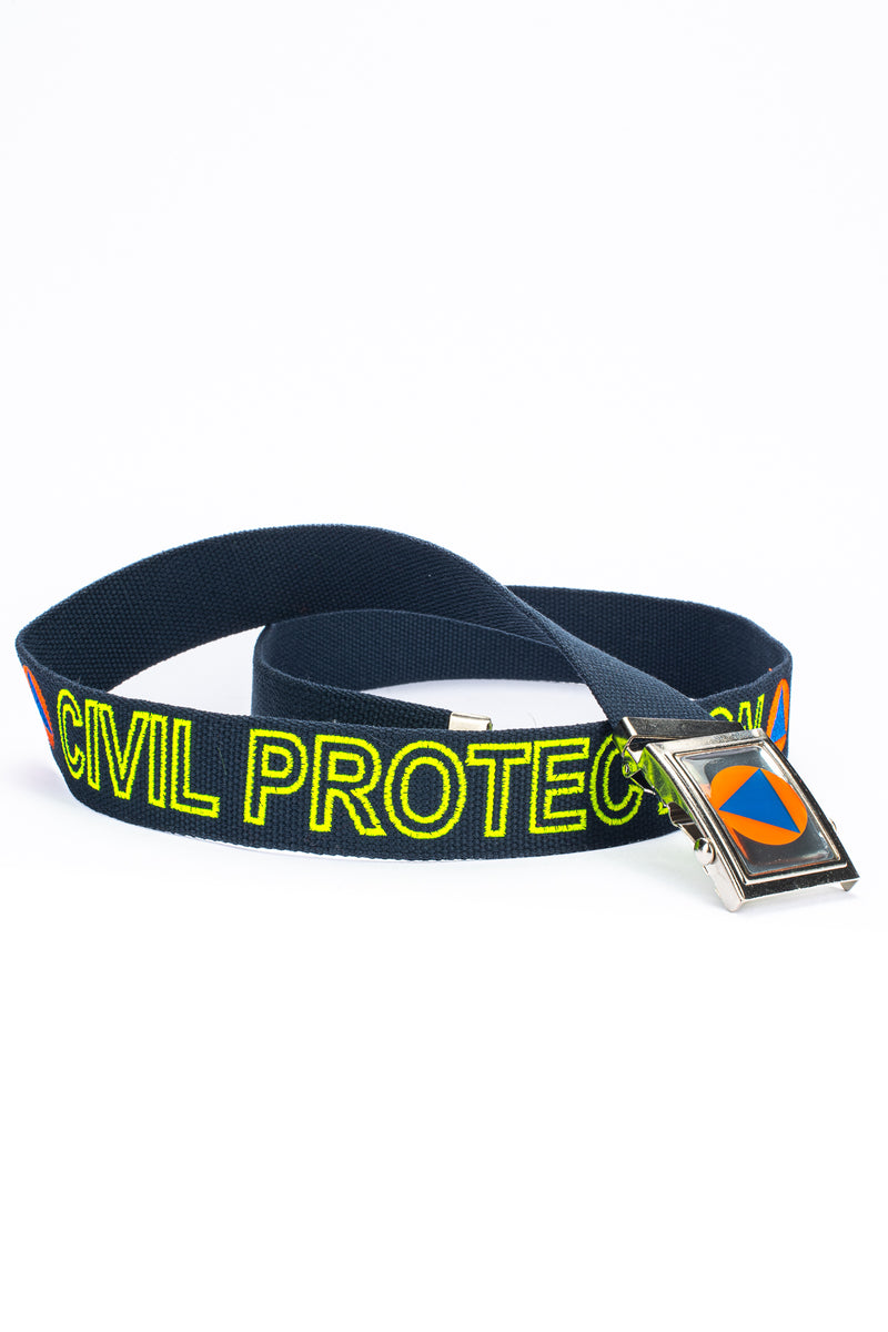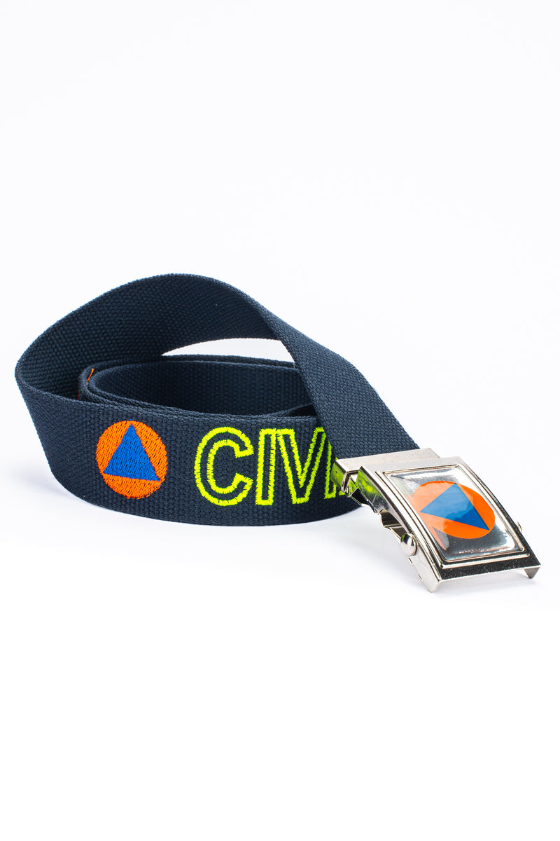 CINTURA BLU CON LOGO VETRIFICATO E RICAMO DIRETTO "PROTEZIONE CIVILE LOGO INTERNAZIONALE"